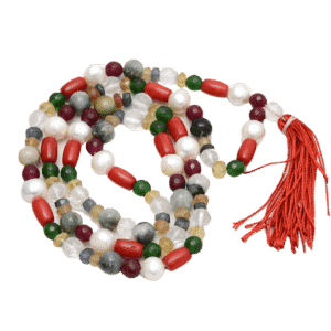 - Navratana mala is made up of Pure Brass (Panchdhatu) and with nine Gemstone tied up with a thread which looks very beautiful and Spiritual.