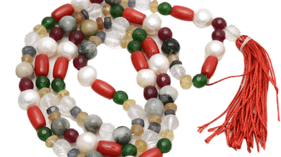 - Navratna mala blesses a wearer with name, fame, wealth, good luck, and happiness.