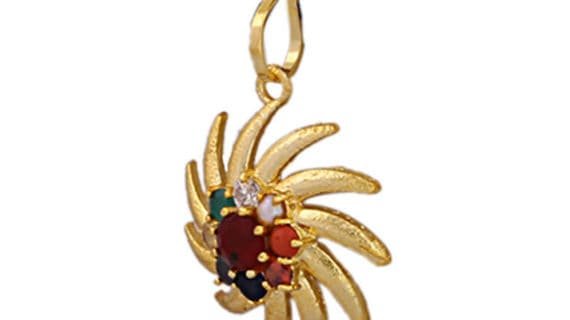 Designer Party Wear Synthetic Navratan/Navgrah Brass Sun Shape Locket/Pendant