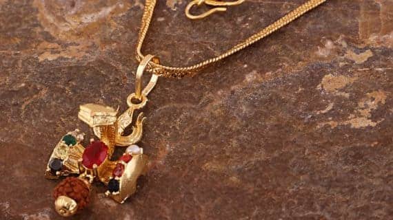 Designer Wear Synthetic Snake Navratan Pendant (Navgrah) Trishul Brass Flower Shape Charms
