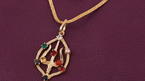 • This Shiv Shakti Kavach Trishul Pendant is made up of Pure Brass (Panchdhatu) with navratna stabbed in this Pendent, plated in gold looks very spiritual and Religious.