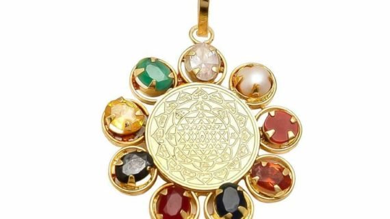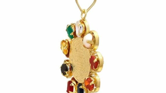 Shri yantra Navratna Navgrah Gold Plated Synthetic Gems real pearlÂ