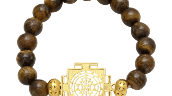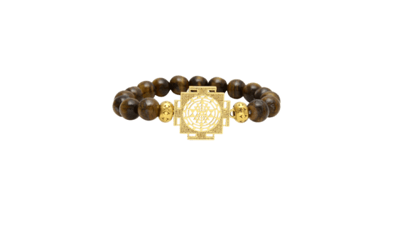 - This bracelet made with tiger eye stone is unique, elegant, and powered by Brass Plate Sri Yantra. This bracelet represents the meditative mind and peace side of yours.