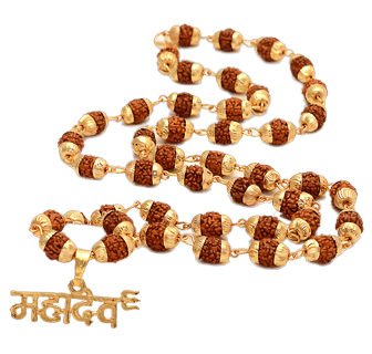 - Handmade Holy Gold Plated Trishul Lord Mahakal Locket attached in a Panchmukhi Rudraksha Mala made up of Pure Brass (Panchdhatu) enhances Wisdom, knowledge, and Power.