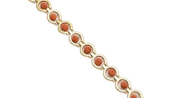 This Religious gold plated Panchmukhi Rudraksha Bracelet made up of Pure Brass (Panchdhatu) gives an ethnic and Spiritual Look to one’s Beauty.