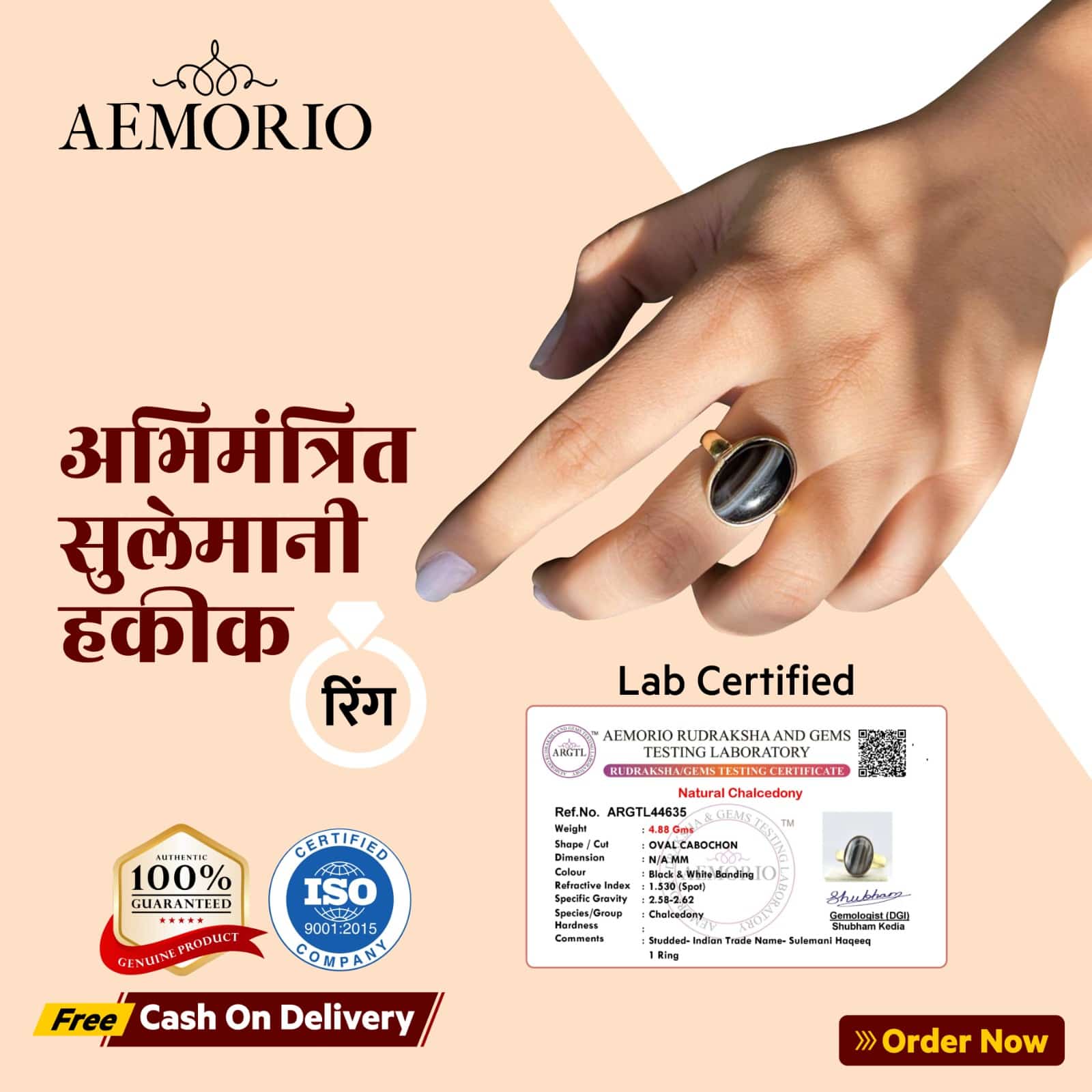 சுலேமணி ஹக்கிக் மோதிரம் தூய பித்தளைகளால் ஆனது மற்றும் கிரிஸ்டல் ஹக்கிக் கல்லால், ஓவல் வடிவத்தில் தங்கத்தில் பூசப்பட்டிருப்பது மிகவும் அழகாகவும் நேர்த்தியாகவும் தெரிகிறது. மோதிர அளவு சரிசெய்யக்கூடியது. ஹக்கிக்ஸ் (அதிர்ஷ்டம் சொல்பவர்) கல் என்று அழைக்கப்படும் சுலேமானி அணிந்திருப்பவரை நேர்மறை ஆற்றலுடன் ஆசீர்வதிக்கிறார்.   மேலும் கனவுகளைத் தடுக்கிறது மற்றும் அணிந்தவருக்கு ஒலி தூக்கத்தை உறுதி செய்கிறது..