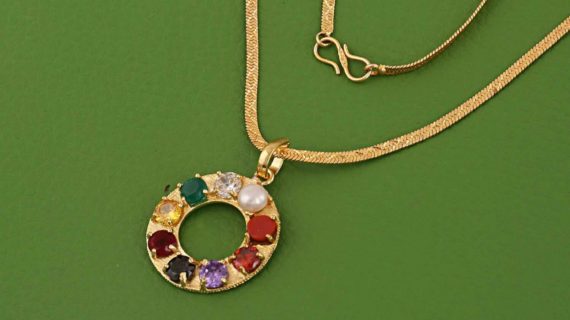 • Navratana pendent blesses a wearer with nine gemstone and attracts positive vibes happiness, wisdom and prosperity.