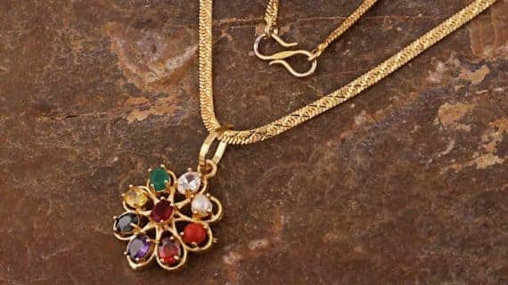 • Navratana pendent blesses a wearer with nine gemstone and attracts positive vibes happiness, wisdom and prosperity.