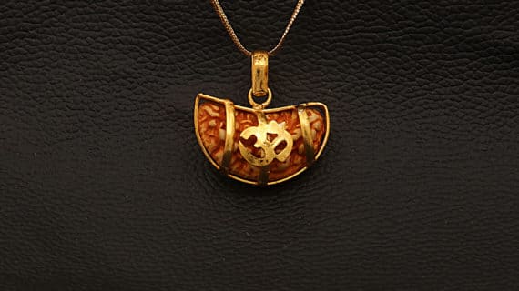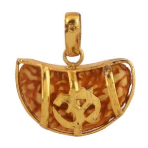தங்கத்தில் பூசப்பட்ட ஓம் சின்னத்துடன் கஜு வடிவத்தில் கஜு ருத்ராட்சா பதக்கமானது மிகவும் புனிதமானது மற்றும் மிகவும் மத மற்றும் ஆன்மீக தோற்றத்துடன் காணப்படுகிறது.