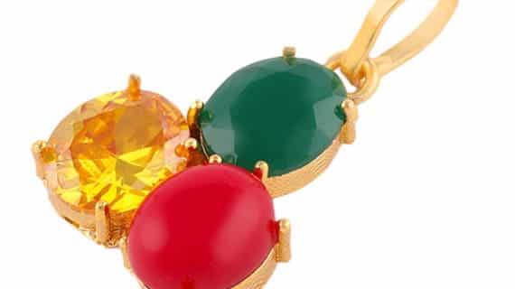 This pendant made of pure brass (Panchdhatu) and with three gemstones i.e. Emerald, Yellow Sapphire, and Ruby, plated in gold looks very beautiful, Spiritual, and Elegant.