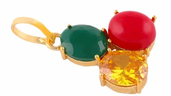 Emerald Red Coral and Yellow Sapphire Stone Pendant Gold Plated