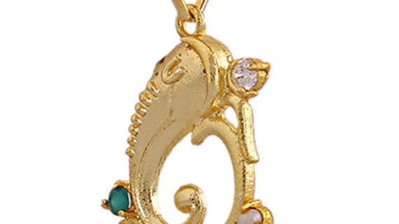 Be the first to review “Navratan Ganesh Om Locket Pendant with Golden Brass Gemstone”