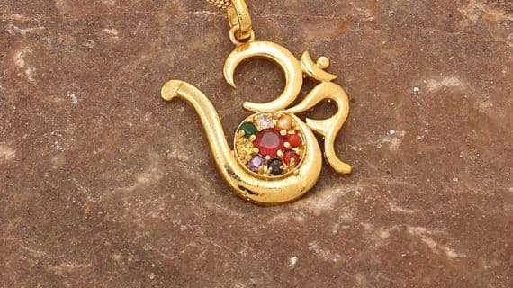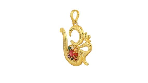 • Om pendant is made up of Pure Brass (Panchdhatu) and with navratna which are beautifully stabbed in this pendent all around, plated in gold looks very spiritual and Religious.
