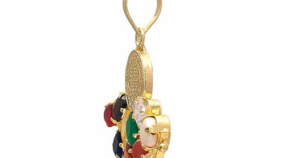 Navgrah known as Nine gemstone used in this pendant are an American or Synthetic nine stones which are used beautifully in this pendant which makes it affordable to buy.