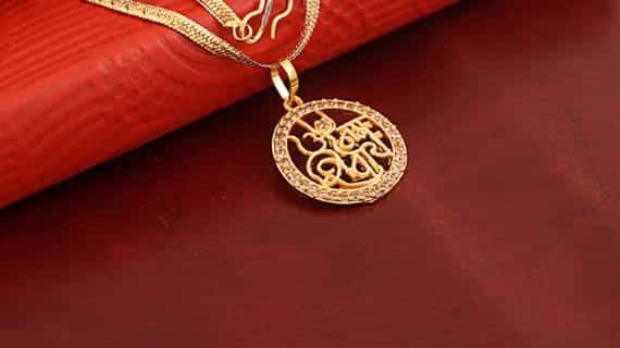 - OM Namah Shivay in a round shape is made up of Pure Brass (Panchdhatu) and with zircons which are properly stubbed all-around at the edges of this pendant, plated in gold makes it look very beautiful and religious.