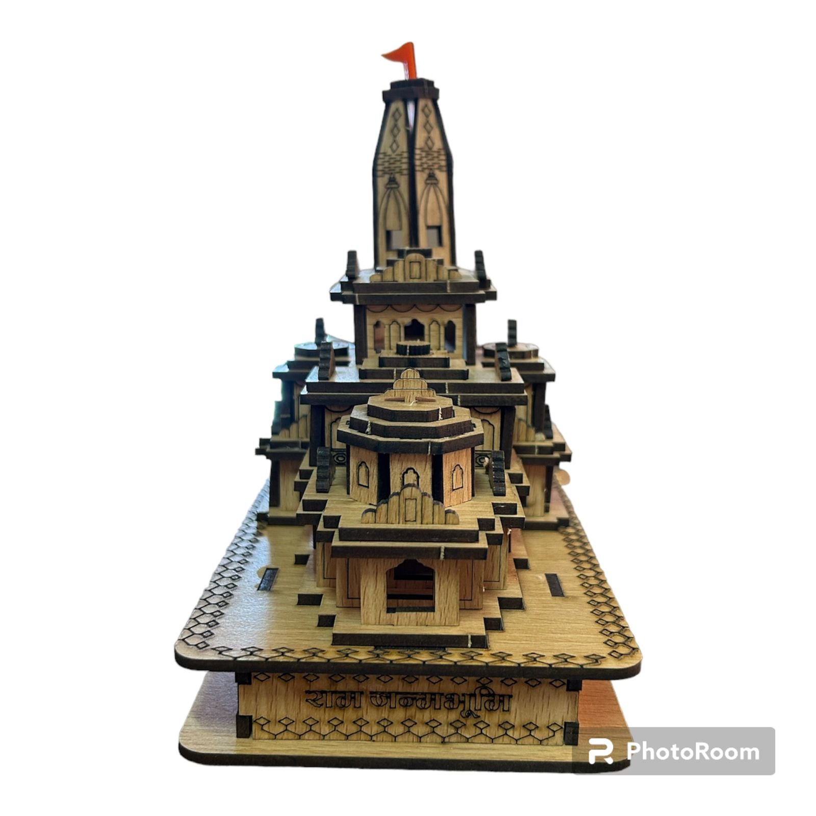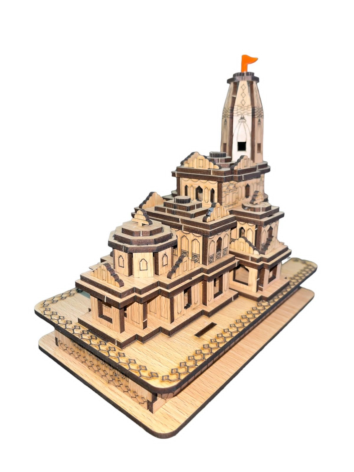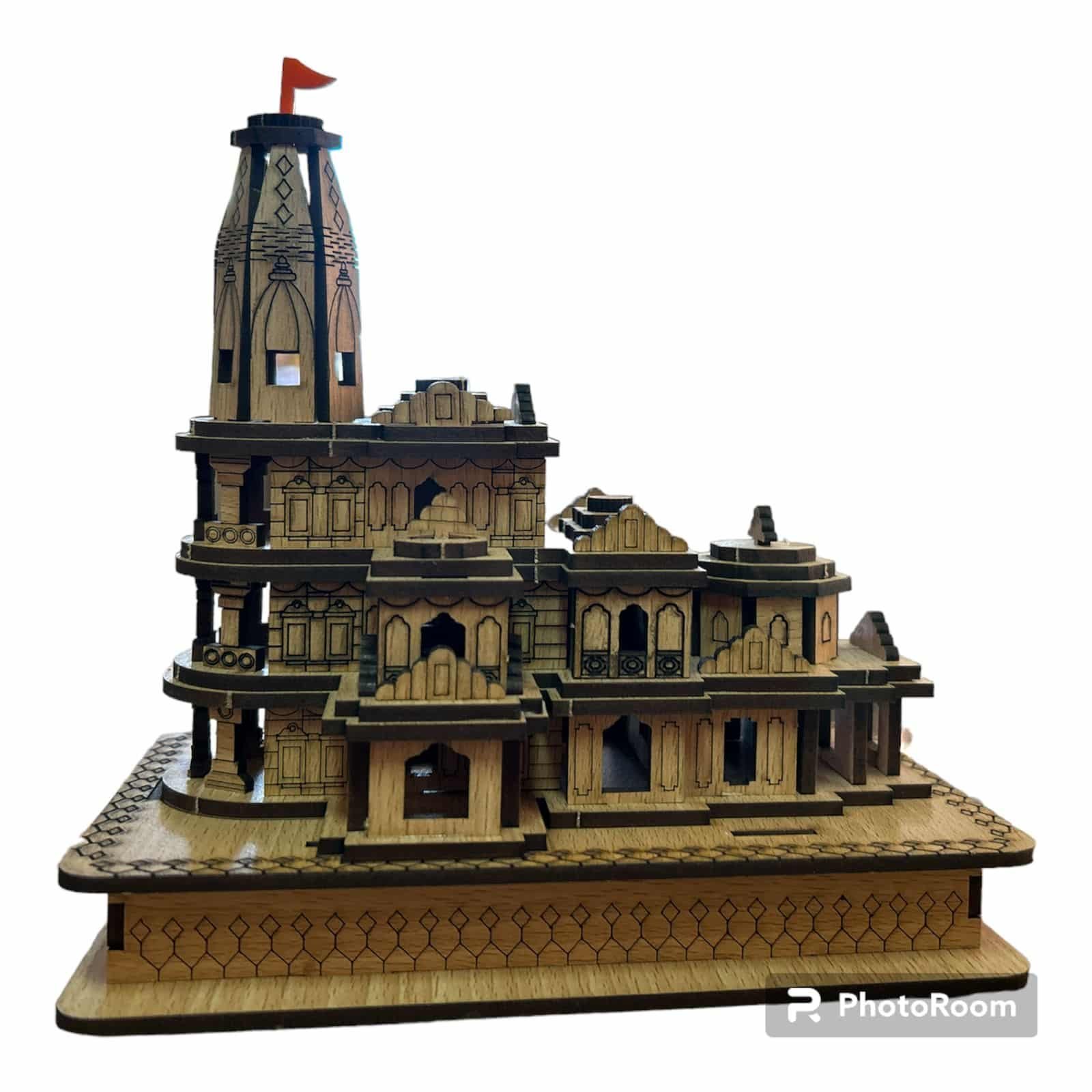 Exquisite Craftsmanship: Meticulously crafted from high-quality pine wood MDF, this model showcases intricate detailing, emulating the grandeur of the Ram Mandir in Ayodhya.