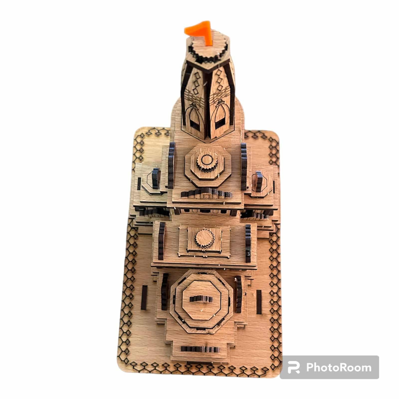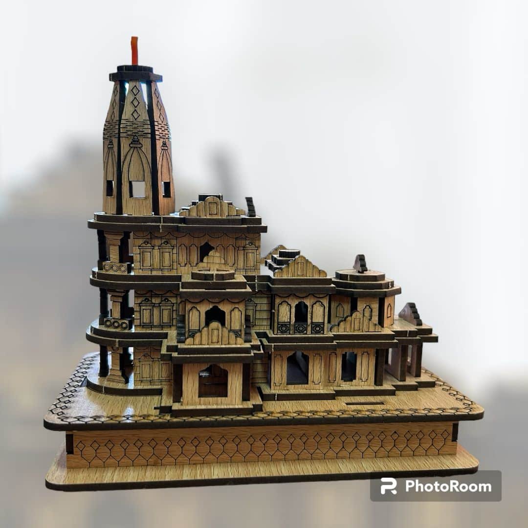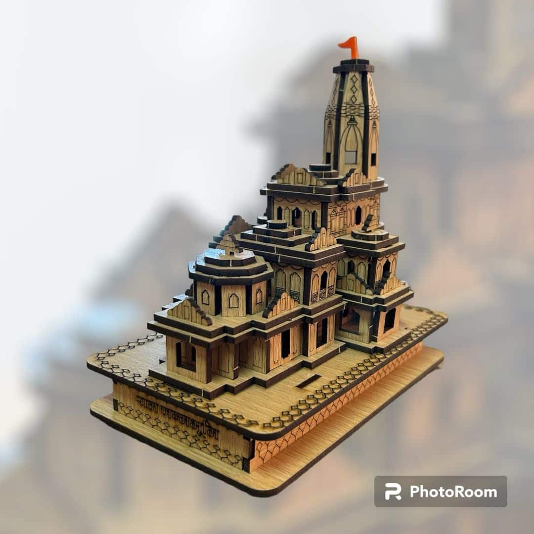 Exquisite Craftsmanship: Meticulously crafted from high-quality pine wood MDF, this model showcases intricate detailing, emulating the grandeur of the Ram Mandir in Ayodhya.