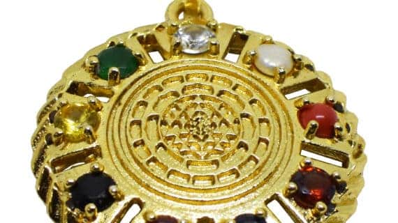 नवरत्न श्रीयन्त्र पेंडेंट में शुद्ध पीतल (पंचधातु) जो 9 रत्नों से जड़ा हुआ होता है, के चारों ओर ओवल शेप में बना होता है, जो गोल्ड में चढ़ाया जाता है, बहुत ही शुभ और शक्तिशाली होता है जो बहुत ही आध्यात्मिक और सुंदर दिखता है।