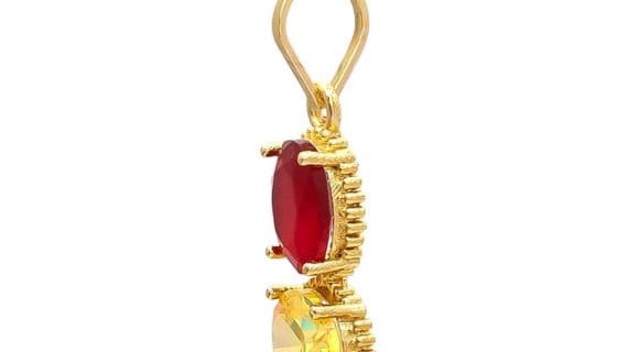 शुद्ध पीतल के पंचधातु से बना और 2 रत्न यानि पीले नीलम और रूबी के साथ सोने में चढ़ाया गया यह पेंडेंट बहुत सुंदर और सुरुचिपूर्ण दिखता है