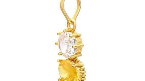 शुद्ध पीतल के पंचधातु से बना यह पेंडेंट और 2 रत्न यानी येलो सैफायर और जिक्रोन के साथ सोने में जड़ा हुआ बहुत सुंदर और सुरुचिपूर्ण दिखता है।